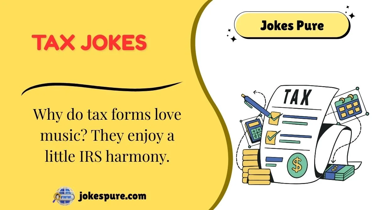 - Why do tax forms love music? They enjoy a little IRS harmony.